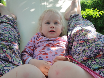 Den sommer hvor Agnes var her første gang, 2008, købte jeg en hængekøje. Det har været en stor succes lige siden. Vi har sovet mange lure i den, og nu fungerer den som en dejlig gynge.